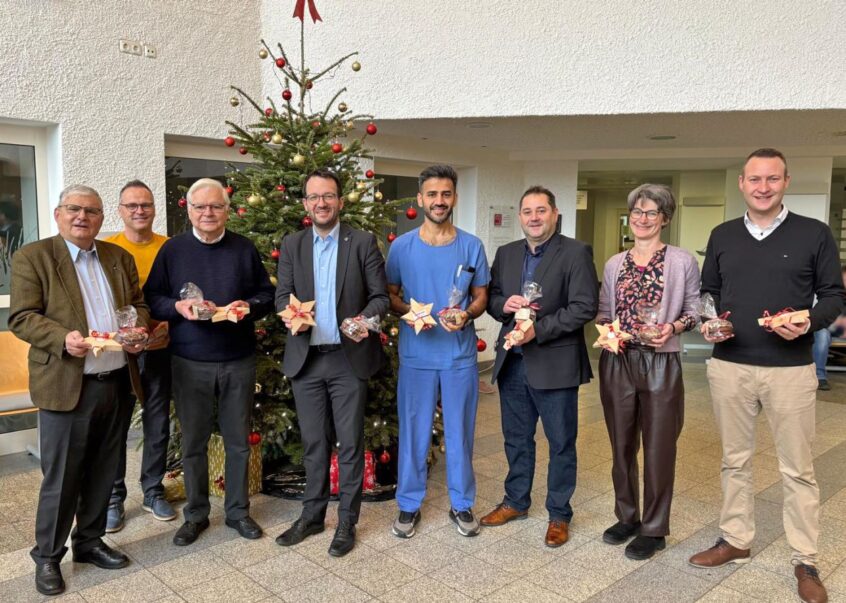 Beim traditionellen Weihnachtsbesuch gemeinsam mit der Klinikleitung wurden Patienten sowie diensthabendes Personal bedacht. Die Abordnung verteilte Lebkuchen und dekorative Holzsterne mit Teelicht an die Patienten. Auch die Mitarbeitenden, die über die Feiertage im Einsatz waren, erhielten ein Präsent – als Zeichen des Dankes für den unermüdlichen Einsatz rund um die Uhr.